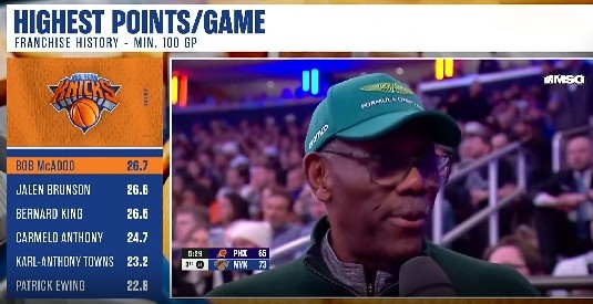 >尼克斯队史100场以上得分榜:麦卡杜第一 布伦森0.1分之差第二