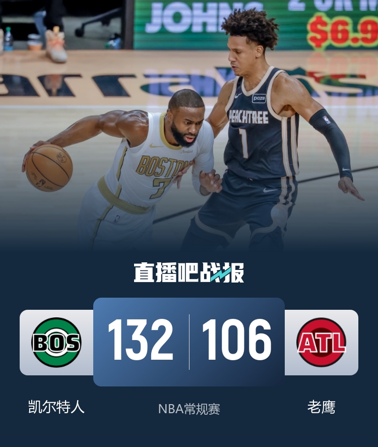直播吧1月18日讯 NBA常规赛今日继续开打,老鹰坐镇主场迎战东部排名第二的凯尔特人,这也是两支球队本赛季的首次交锋。