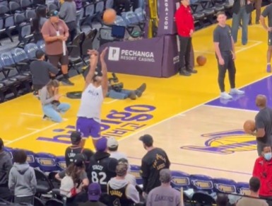 大秀绝活儿!斯玛特背对篮筐后仰超高弧度出手 篮球应声入网
