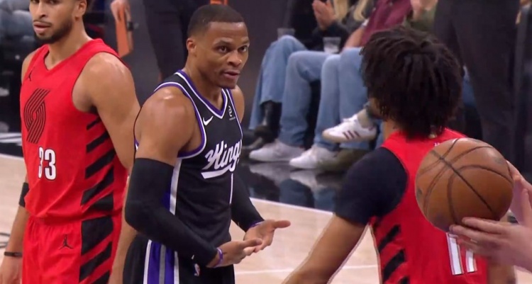 >状态真好!威少顶着防守强投打进加罚 再现摇娃娃庆祝