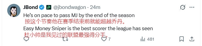 美网友热议KD得分超司机:杜小帅是最强得分手 乔丹下一个到你咯