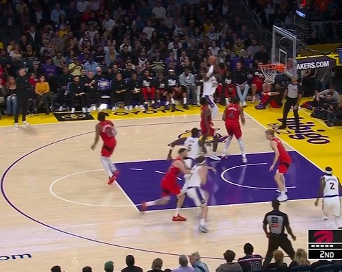 >这球够稳!詹姆斯背打巴恩斯命中翻身后仰跳投 湖人反超猛龙