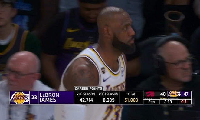 历史的书写者!詹姆斯生涯常规赛+季后赛总得分突破51000大关