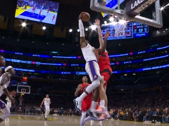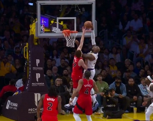 壮心不已!詹姆斯反击直杀内线 起飞力压防守隔扣被犯规破坏