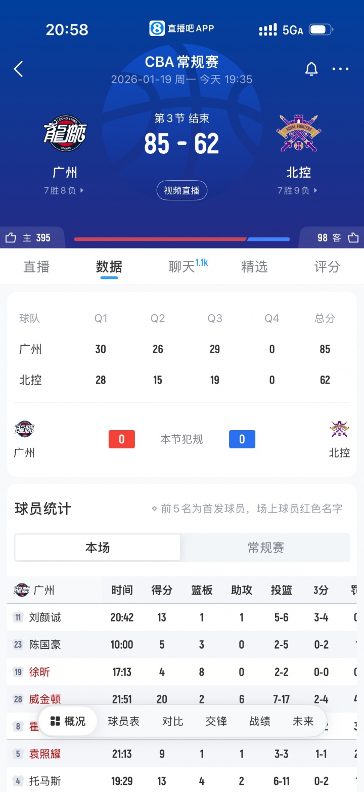 截至发稿,陈国豪首发出战并且打满首节之后还没有再上场,据媒体人麦穗丰消息,据其了解,龙狮男篮跟北控男篮在交易中有相关的回避条款,即“陈国豪在面对北控男篮的比赛只能打一节”。