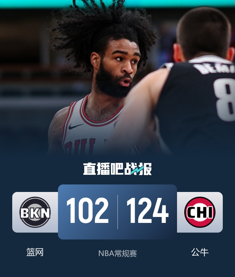 首节对决公牛开局短暂拉锯后迅速接管比赛,进入后半节的他们轰出一波28-14的攻势一举拉开17分的领先早早奠定局势;次节篮网进攻端回暖,公牛凭借首节取得的大比分领先一直保持着局面领先,上半场公牛三分20投12中手感火热并带着19分领先进入下半场。休息归来篮网进攻端走低表现不稳定,公牛则依旧稳定并很快取得20分以上的领先;此后篮网没有再做挣扎,公牛保持着大比分优势没有受到任何威胁。最终,公牛主场轻取篮网收下比赛。