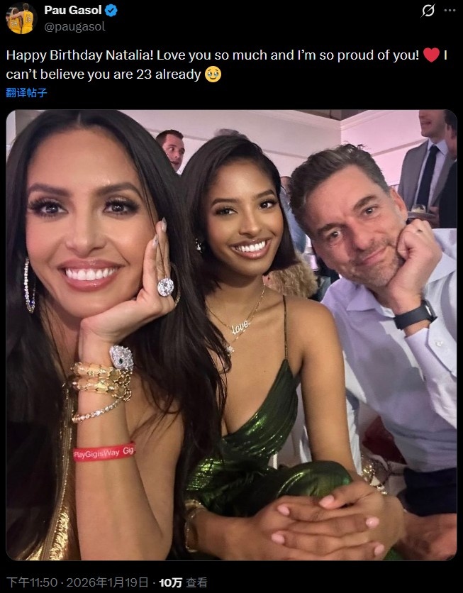 大加索尔在社媒晒出了自己与瓦妮莎、娜塔莉亚的合照,并配文:娜塔莉亚生日快乐!我非常爱你,也为你感到无比骄傲!真不敢相信你已经23岁了。