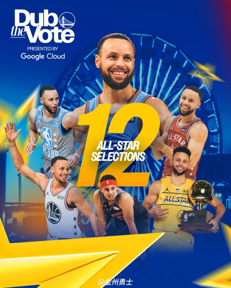 勇士官方微博发文祝贺库里:“祝贺库里入选NBA全明星首发🌟 这也是库里生涯第12次入选全明星,继续刷新勇士队史纪录! ”
