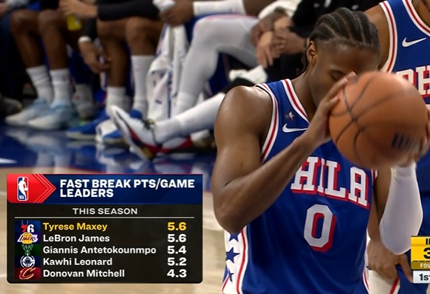本赛季场均快攻得分:马克西与詹姆斯并列领跑 字母第三 小卡第四
