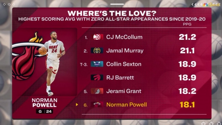 19-20赛季以来场均得分最高但从未入选全明星球员Top6:CJ、穆雷、塞克斯顿、巴雷特、格兰特、鲍威尔