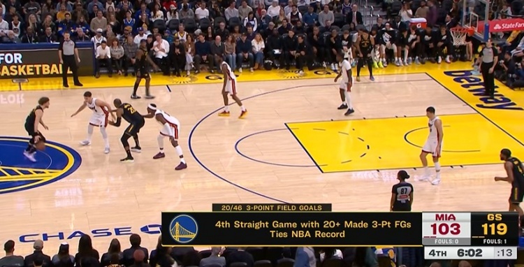 追平NBA历史纪录!勇士连续第4场比赛命中20+三分球
