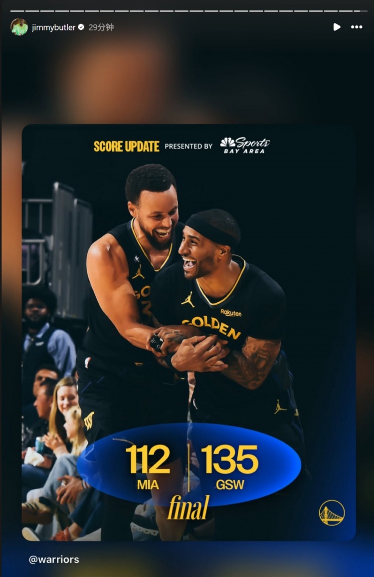 在赛后,因伤离场的巴特勒不忘关心球队,他转发了球队的赢球海报,祝贺球队取得比赛胜利。