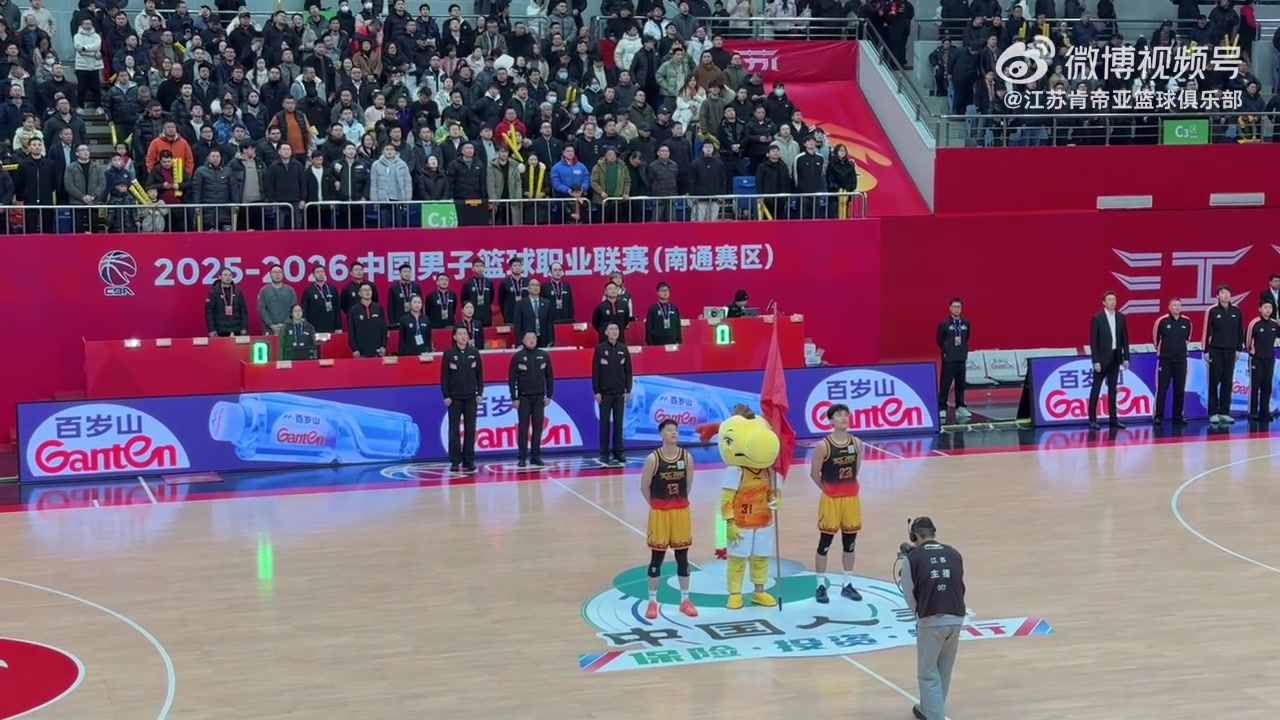 为肯帝亚男篮加油助威!江苏vs新疆比赛球员闫实、刘泽希领唱国歌