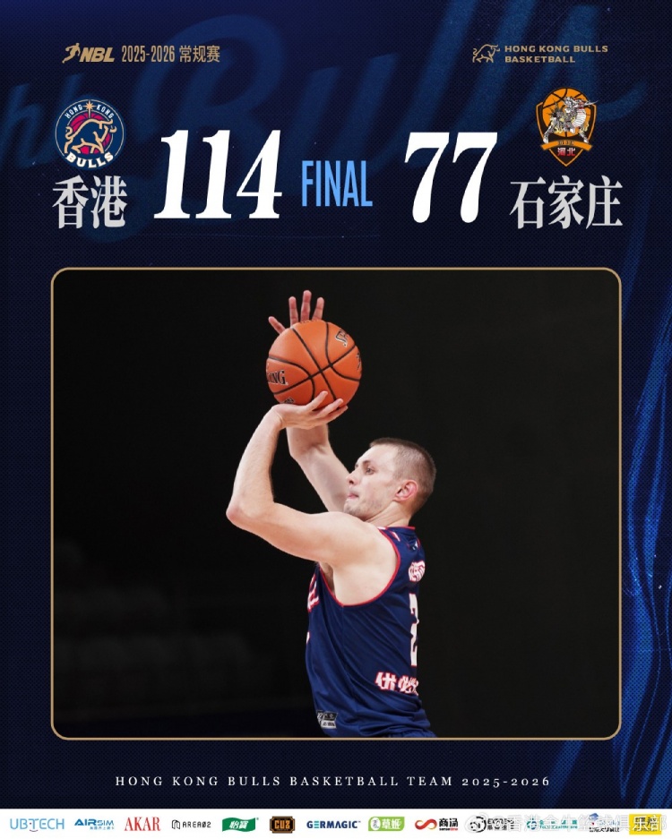 末节比赛,阿诺斯克延续火热状态,一上来完成暴扣,厄特尔外线手感滚烫,连续命中多记三分,帮助球队牢牢保持优势。全场比赛结束,香港金牛114-77战胜石家庄翔蓝,取得十一连胜。