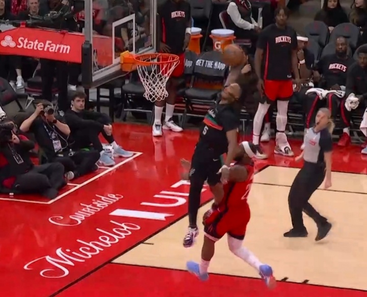 差点摔倒!卡斯尔快攻大风车暴扣表演 奥科吉上来碰了一下犯规