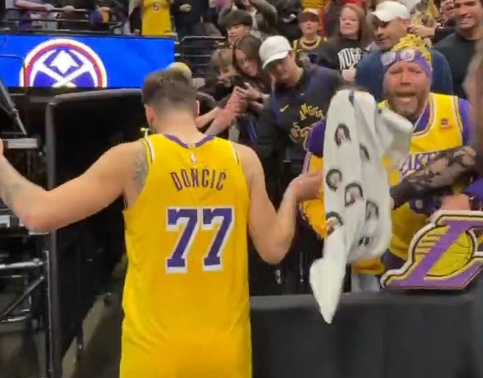 >詹姆斯和东契奇赛后都为球迷送上原味儿毛巾 球迷都欣喜若狂