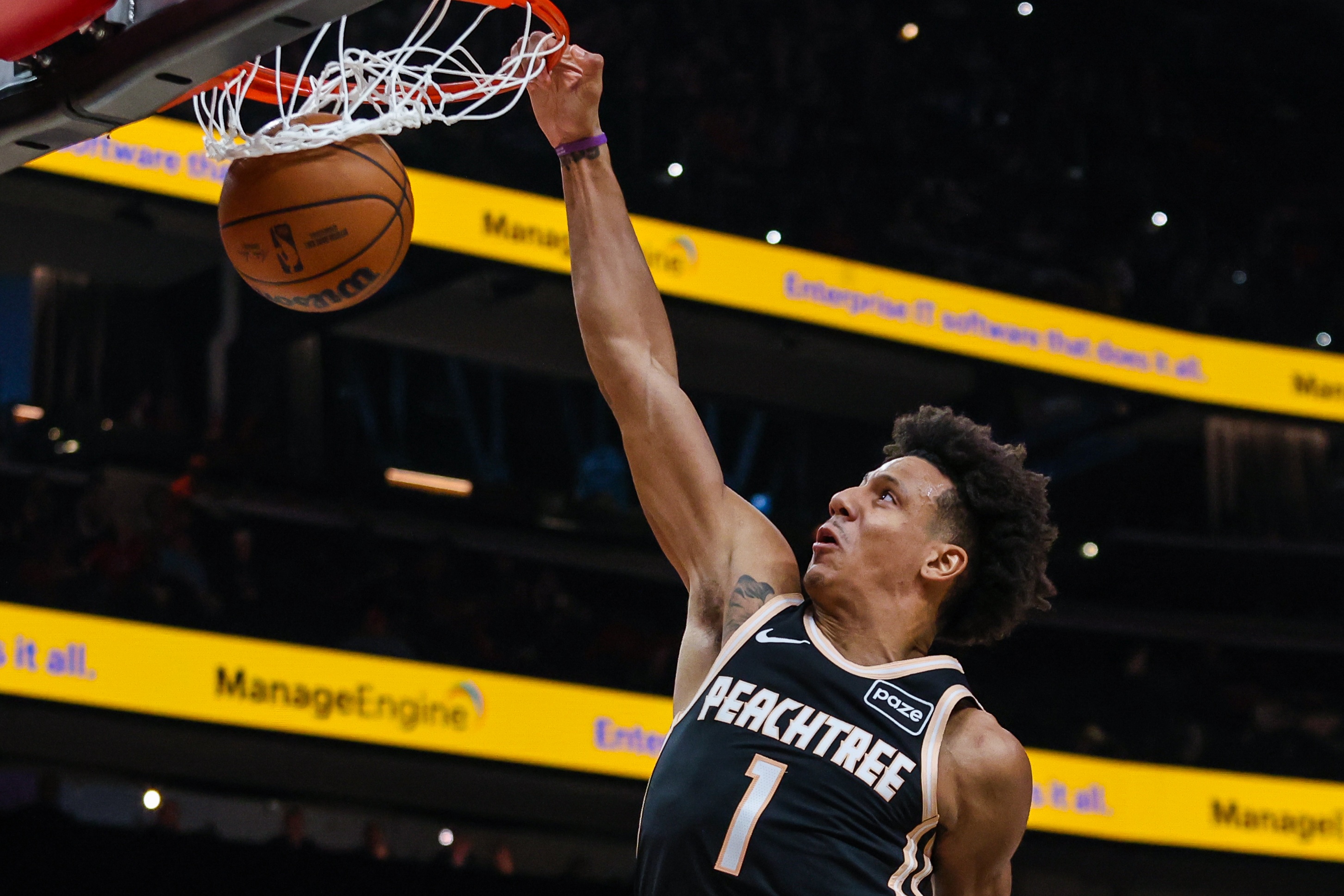 本场比赛,老鹰球员杰伦·约翰逊继续全面发挥,进攻端有攻有传带领球队,还侵略性十足。他出战39分钟,21中10,三分6中2,罚球11中10怒砍32分15篮板8助攻1抢断,出现4失误。