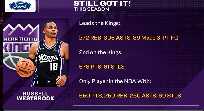 >威少篮板&助攻&三分皆队内第一 650分&250板&250助&60断联盟唯一