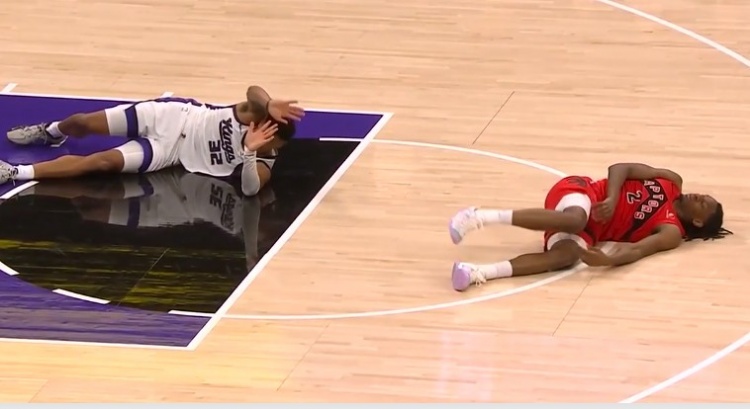 >危险动作!考德威尔倒地拉扯莫格博腿部致后者摔倒 被吹一级恶意