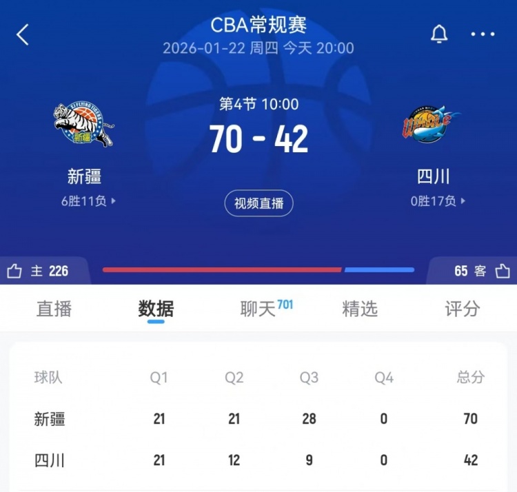 一节足矣!新疆第三节打出28-9单节净胜19分 三节过后领先28分