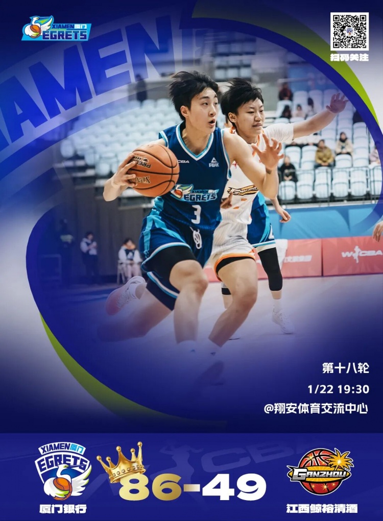 1月22日,WCBA25-26赛季常规赛第十八轮,厦门银行继续主场迎战江西鲸裕清酒,两队三天前的交手,厦门银行19分优势轻松取得胜利。本场比赛,厦门银行新外援马歇尔迎来首秀,谢泼德缺阵。
