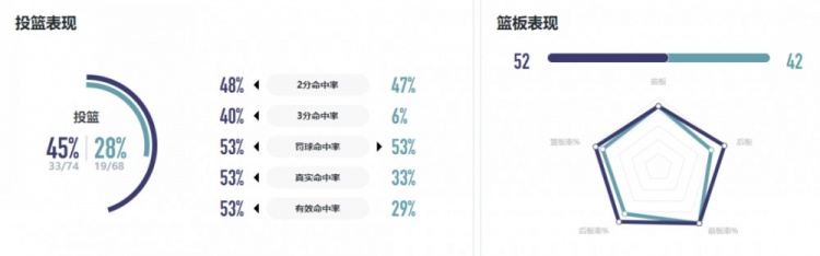 球队方面,厦门银行整体进攻端发挥出色,配合也在线:她们投篮命中率44.6%、三分球命中率40%均以压倒性优势高于对手的27.9%和6.3%;篮板上厦门银行抢下49个比江西女篮多了11个;助攻数更是差距巨大,26-5比对手多21个。球员方面,外援马歇尔首秀拿到17分12篮板的大号两双,安娜同样拿到17分外加10篮板;肖婉钰扔进5记三分且一球不丢也是砍下17分,彭诗晴主打串联拿到12分10助攻,另外赖婷艺、李彤、李艺萍等球员也是活力十足。1月29日,厦门银行将作客济源对阵河南豫光金铅,这也是本赛季最后两场常规赛的其中一场,希望球队总结经验、吸取教训、发挥长传、争取客场完美收官。