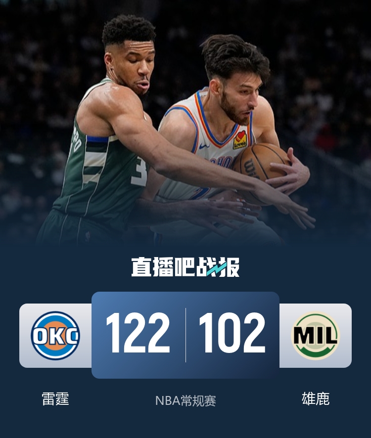 直播吧1月22日讯 NBA常规赛今日继续开打,雄鹿坐镇主场迎战雷霆。