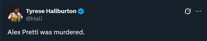 今日NBA森林狼vs勇士的比赛因此被推迟,步行者球星哈利伯顿公开表示:“Alex Pretti被谋杀了。”