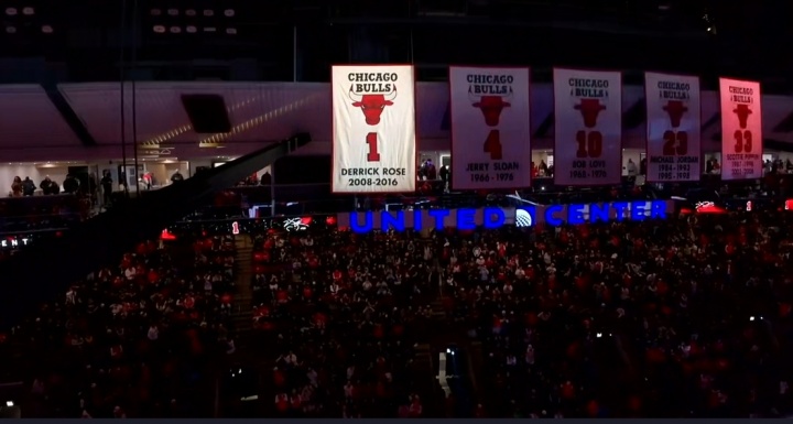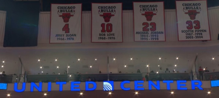 这是公牛退役的第五件球衣,前四位是杰里·斯隆、鲍勃·乐福、迈克尔·乔丹和斯科特·皮蓬。