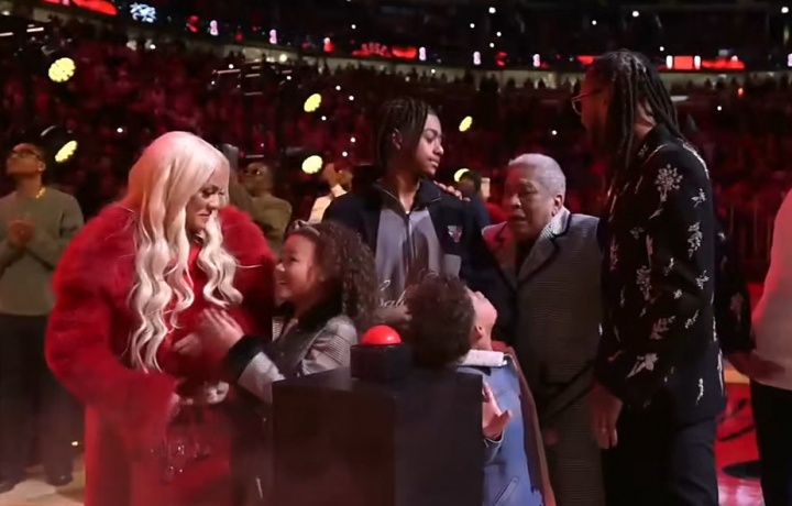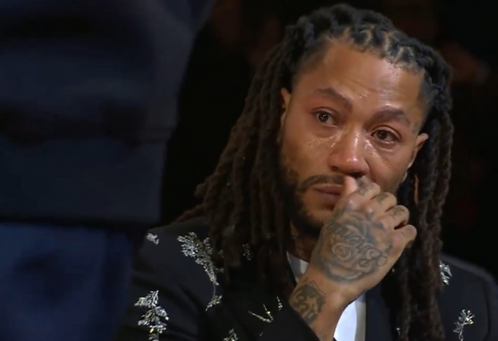 之后罗斯上前进行演讲,主要感谢并致敬了自己的家人们、前教练、前队友、同事和芝加哥的球迷等人。