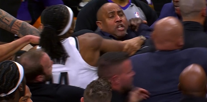 双方众人迅速集结,奥尼尔推了一把杰明,曼恩又上前推奥尼尔!
