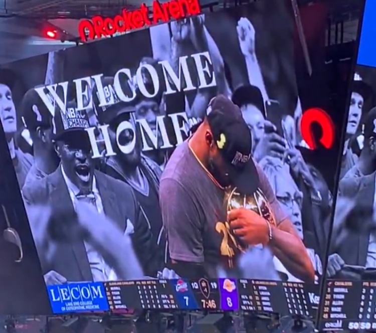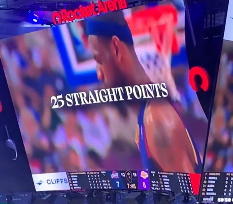 直播吧1月29日讯 湖人客场挑战骑士,第一节暂停期间骑士对詹姆斯进行了致敬。