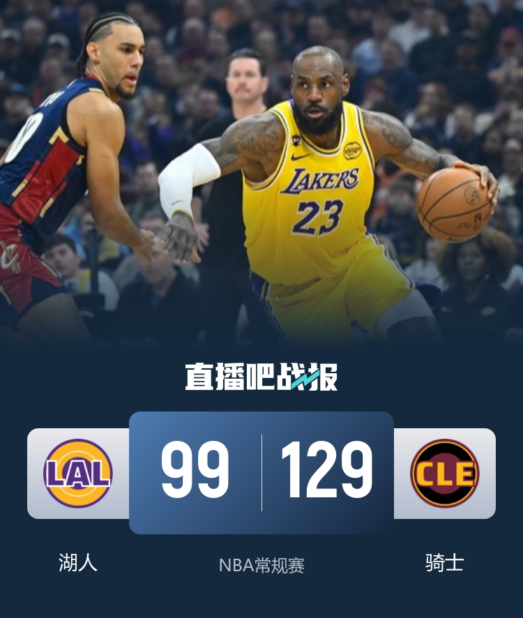 直播吧1月29日讯 NBA常规赛,湖人对阵骑士,湖人最近发挥稳定拿到2连胜,不过骑士状态更加出色取得4连胜。