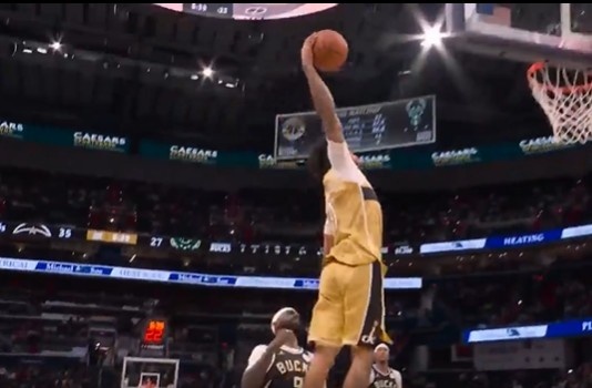 一飞冲天!贾斯汀·尚帕尼抢断反击一条龙 单臂战斧暴扣打停雄鹿
