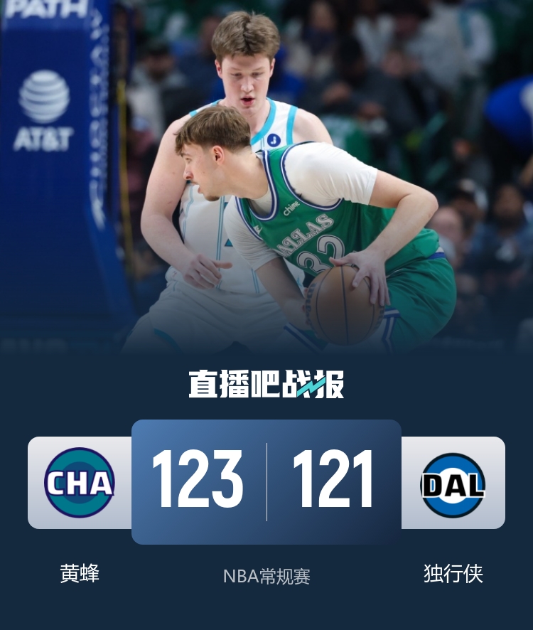 比赛上来,黄蜂就占据了场上的主动权,面对自己模版克莱的克尼佩尔单节就命中四记三分球,在他的出色发挥下分差达到两位数,次节独行侠先拿6分完成止血,状元弗拉格也不甘落后不到半节就砍下14分,最终轰下23分带队追上,半场结束时黄蜂仅领先1分;下半场回来,两位新秀继续对飚,克尼佩尔刷新个人和队史的三分球纪录,弗拉格则是三节砍下40分,末节两队持续拉锯,比赛悬念保持到了最后,两人都刷新了自己的得分纪录,关键时刻克尼佩尔夹击抢断弗拉格反击造成后者犯规,两罚全中比分超出,弗拉格强行出手不中,最终黄蜂险胜独行侠迎来五连胜。