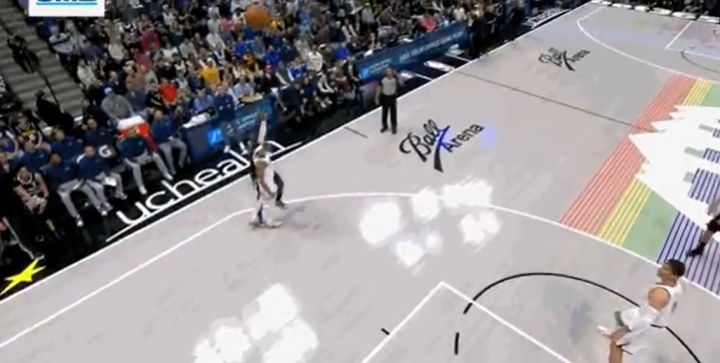 小哈达威投三分落地踩到乔丹·米勒脚 裁判看回放后吹三分犯规
