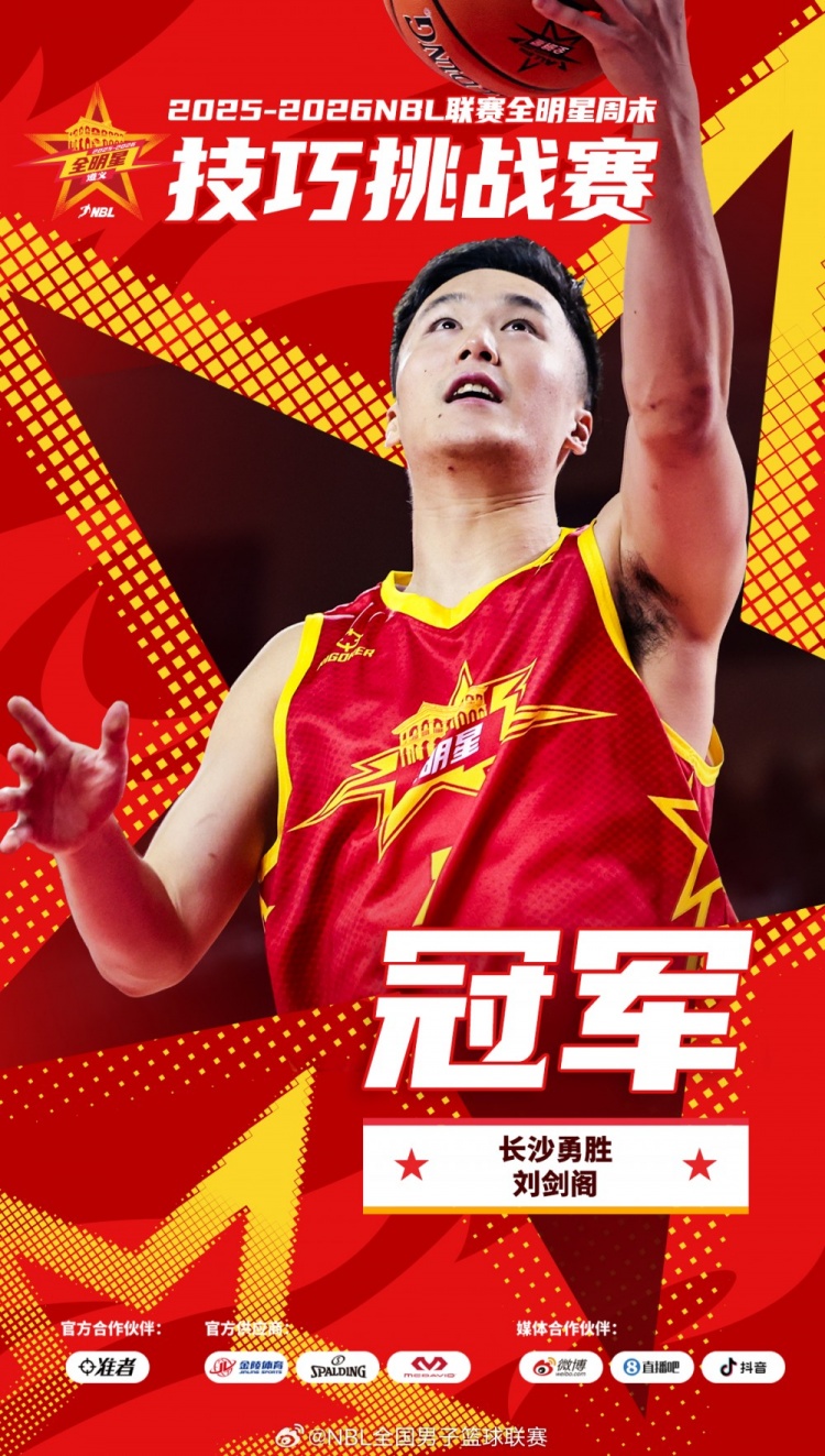 2月1日NBL联赛全明星正赛中场进行的技巧挑战赛决赛中,共有4名NBL全明星球员和1名外卡球员参加,本次技巧挑战赛使用中国篮协篮球技能10级考级内容,最终来自长沙勇胜的刘剑阁以53.36秒的成绩夺得冠军。