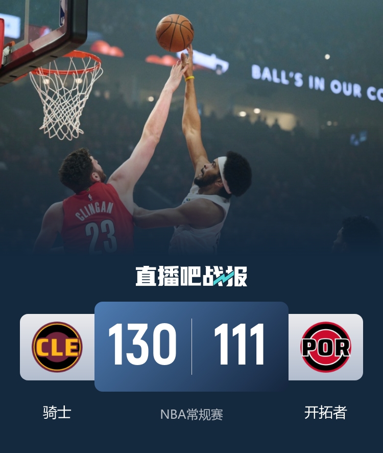 刚开场两队还打得互有来回,阿伦内线爆发接连单打克林根得手帮助骑士打出11-0高潮建立领先,开拓者依靠轮换阵容稍微追回一些分数。第二节两队陷入拉锯战,骑士内外开花,开拓者则是通过外线三分追分,骑士始终占据场上主动,半场过后领先9分。易边再战,骑士外线也连续开火,阿伦在内线依旧活跃,开拓者虽然进攻还行,但是防守完全被打爆,骑士迅速将分差拉大到20分。最后一节克林根在攻防两端都打出强硬表现,帮助球队掀起反扑势头追到只差10分,但随后骑士重新稳住阵脚,没有给开拓者追上比分的机会,杨瀚森最后垃圾时间登场拿到1板1助,最终骑士130-111送给开拓者5连败。