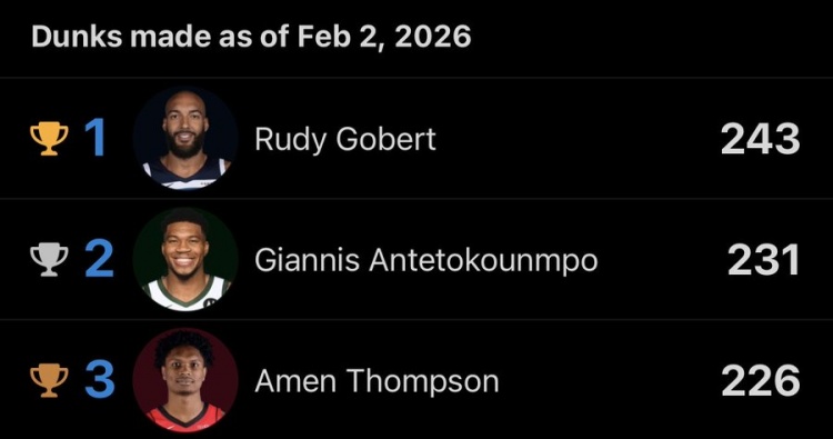 阿门本赛季已完成226次扣篮 联盟第三多 仅次于戈贝尔和字母哥