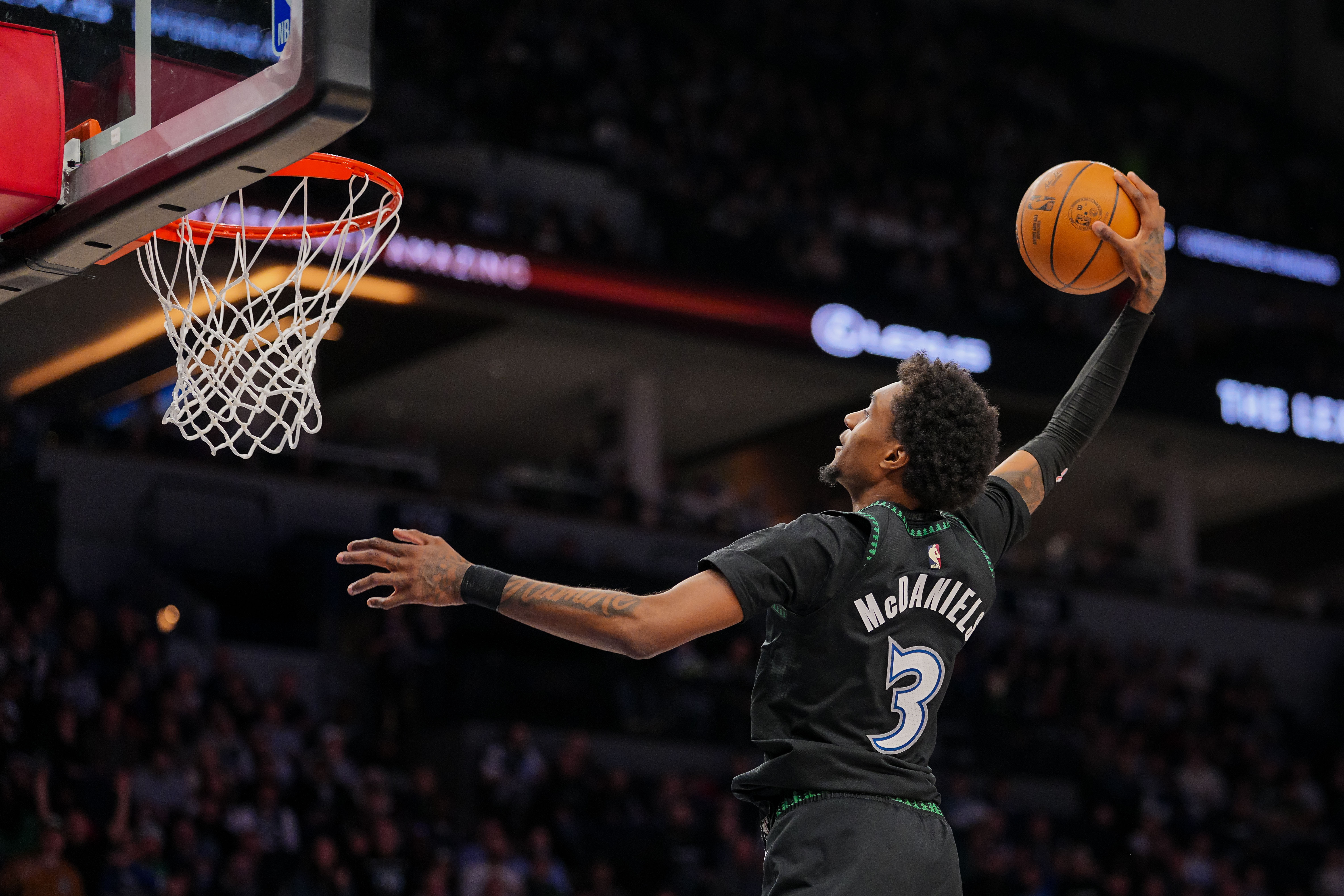 本场比赛,森林狼前锋麦克丹尼尔斯高效发挥,出场37分钟14投11中,三分7中5、罚球2中2拿到29分4篮板3助攻,正负值+2。