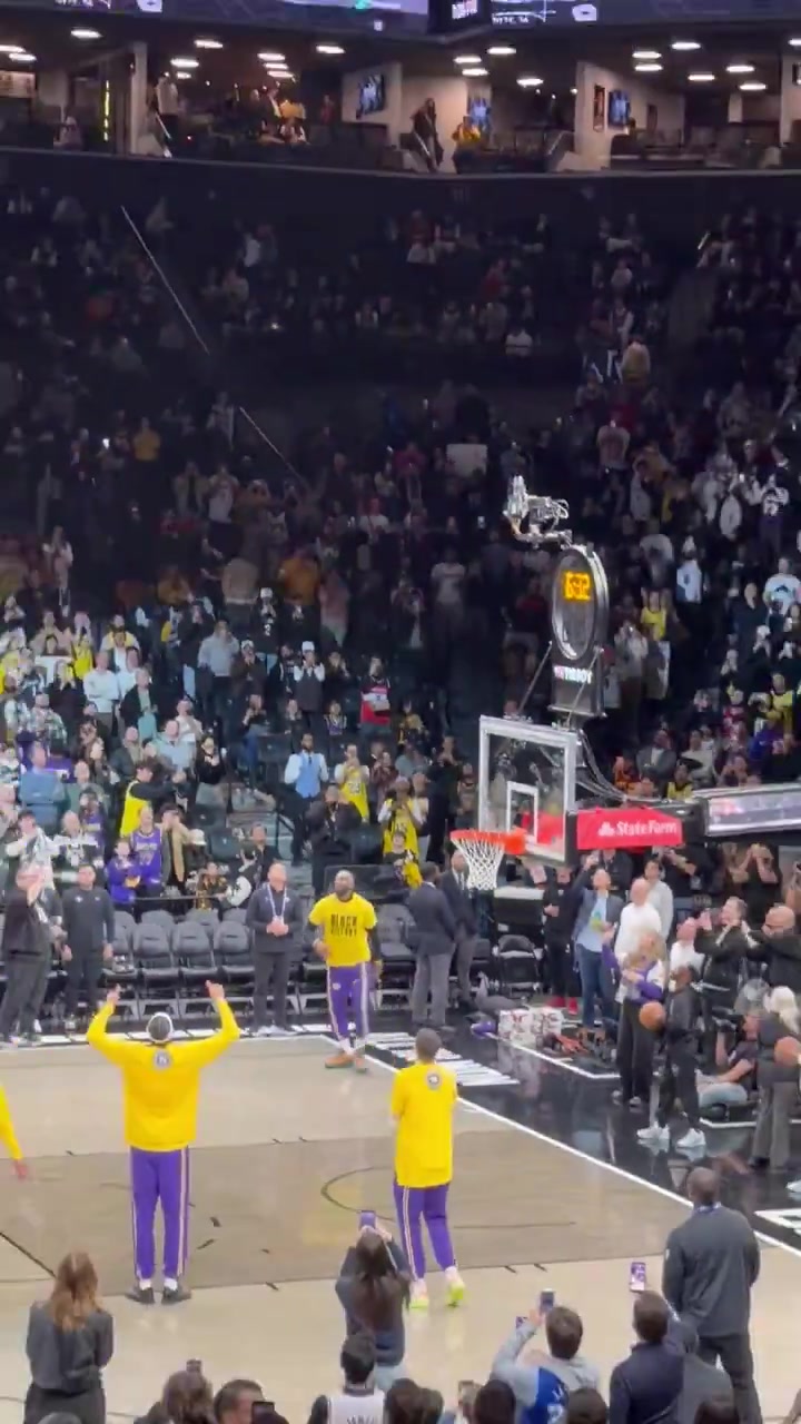 谁想出来的😂老詹引领球队魔性开场 将球扔向天空集体下蹲