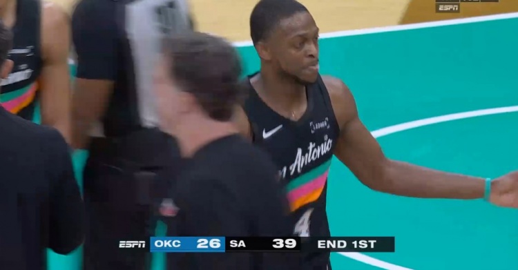 >阵容残缺!雷霆首节26-39落后马刺13分 凯尔登独得12分