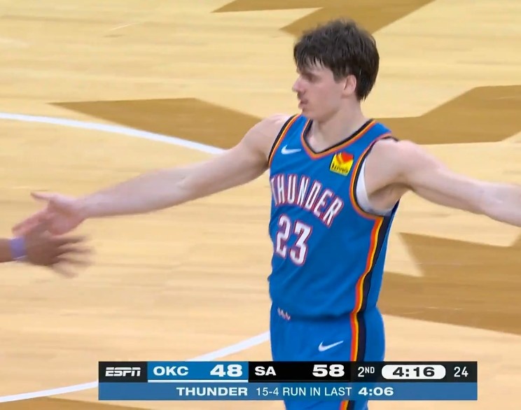 角色球员发威!雷霆轰出一波15-4 将分差追至只有10分
