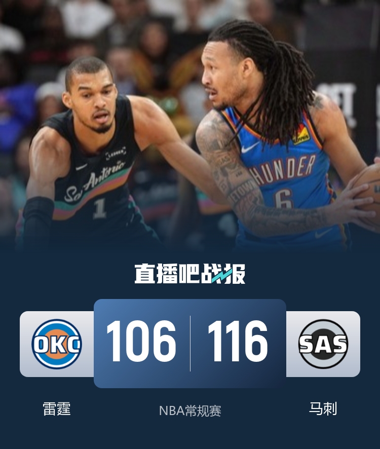 马刺(34-16):凯尔登25分6板2助、文班亚马22分14板2助2帽、福克斯15分4板10助3断、卡斯尔14分3板4助3断2帽、布莱恩特11分5板1助2断、巴恩斯9分7板1助2帽、尚帕尼8分5板3助、瓦塞尔5分3板、科内特4分15板2助、麦克劳林3分1板1助