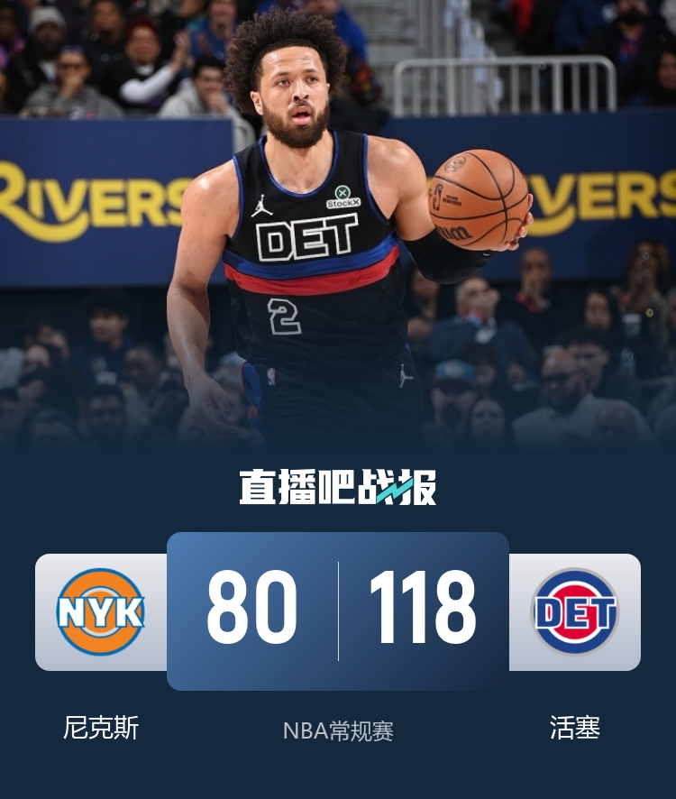 直播吧2月7日讯 NBA常规赛,活塞今日迎战尼克斯,前者上场比赛爆冷不敌奇才,后者则是豪取八连胜,此役杜伦、唐斯、阿努诺比和麦克布莱德等人缺战。