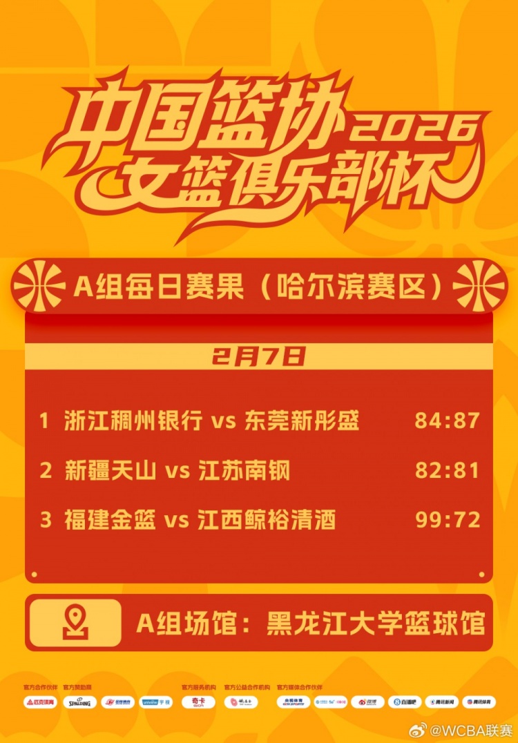 >WCBA联赛2026年中国篮协女篮俱乐部杯 2月7日赛果来啦