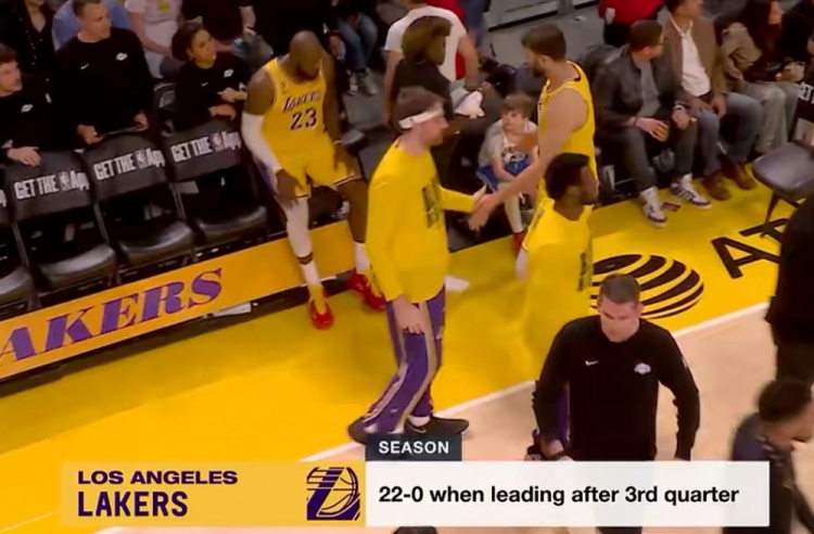 >今天照旧?湖人本赛季三节结束领先时战绩22-0 本场领先勇士