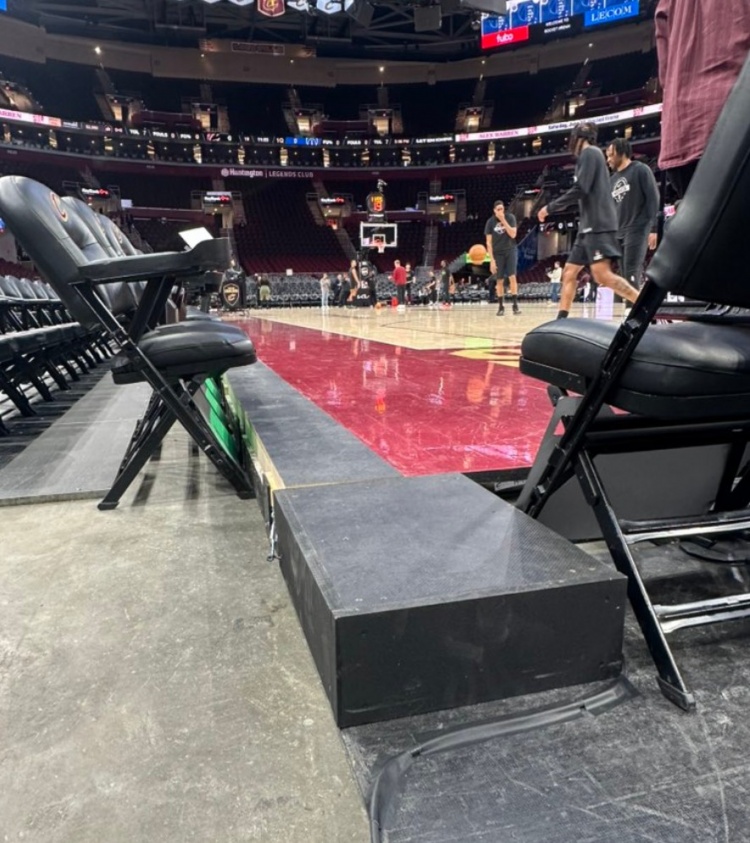直播吧2月12日讯 据骑士队记Danny Cunningham晒图透露,骑士主场的落差地板问题已经修复。