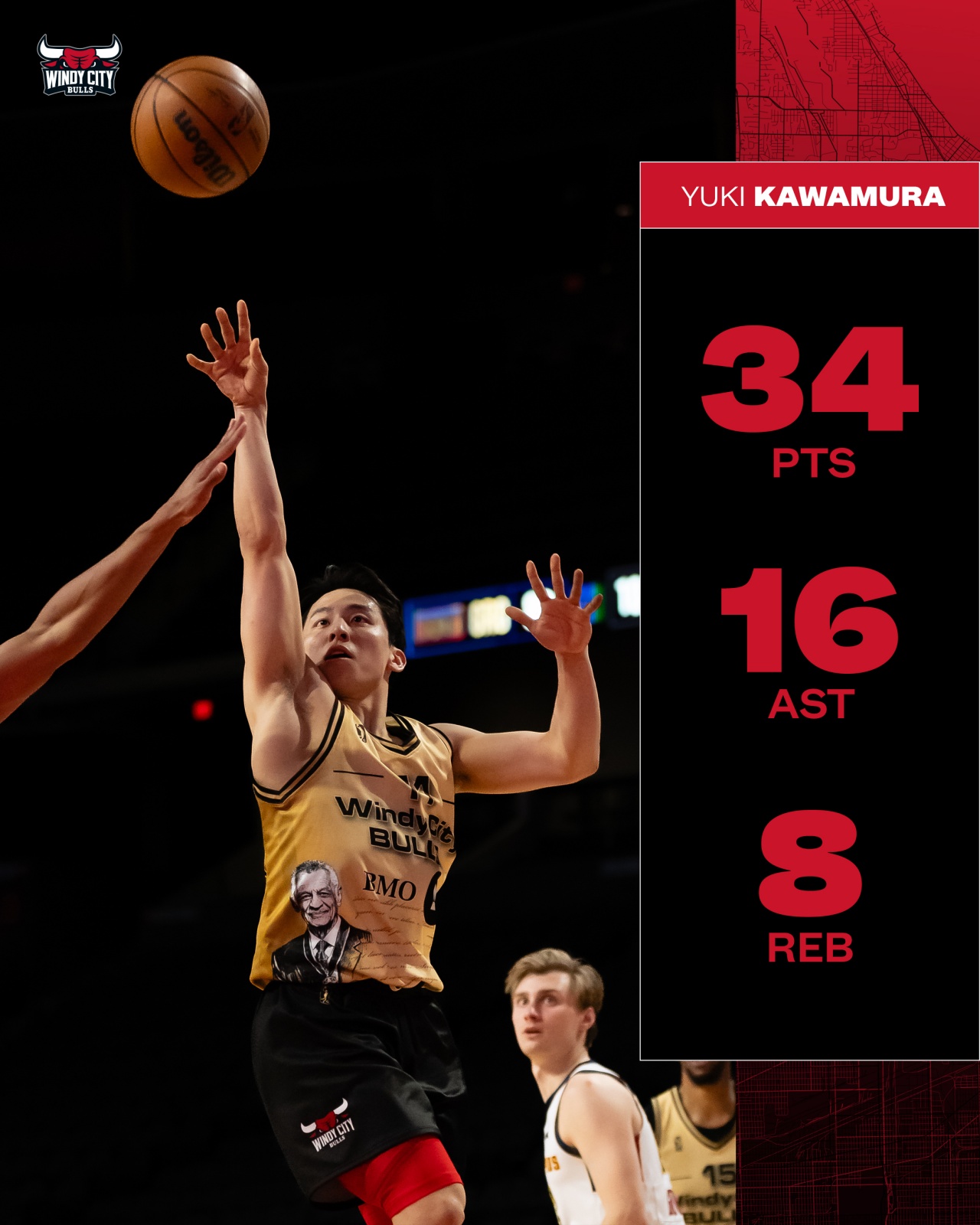 此役,河村勇辉代表风城公牛首发登场出战40分钟,24投12中,三分6中3,4罚4中,砍下个人生涯新高的34分16助攻,外加8个篮板(赛季新高)。