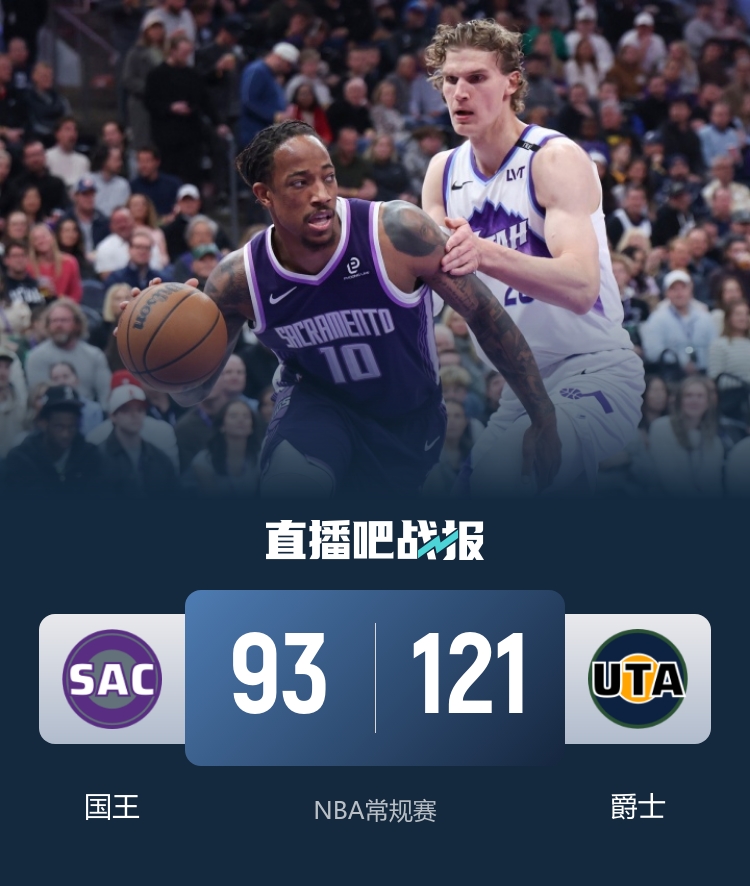 比赛上来,两队短暂拉锯后国王突然断电,爵士打出一波17-0的攻势直接将分差拉开到二十分以上,次节国王依旧没能找到限制对手的办法,爵士单节再拿30+继续扩大领先优势,半场结束时国王落后27分;下半场回来,爵士很快就将分差扩大到三十分以上,他们三节就拿到100分,比赛在末节早已进入到垃圾时间,最终爵士大胜国王,送给后者平队史纪录的14连败。
